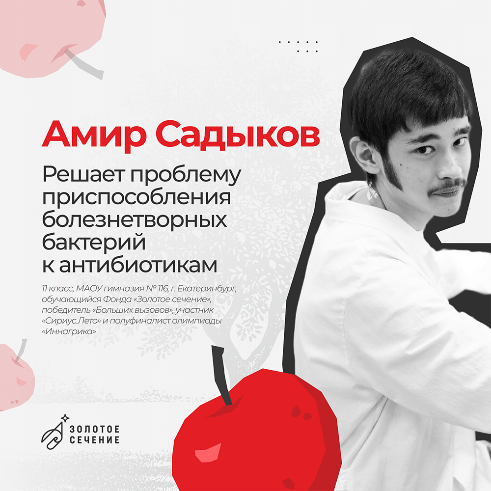 Сегодня знакомим с наработками Амира Садыкова (11 класс, МАОУ гимназия № 116, г. Екатеринбург). Наставник в Фонде — Ольга Киселева, к. б. н., заведующая лабораторией молекулярной генетики плодовых и ягодных культур Свердловской селекционной станции садоводства — структурного подразделения ФГБНУ УрФАНИЦ УрО РАН.