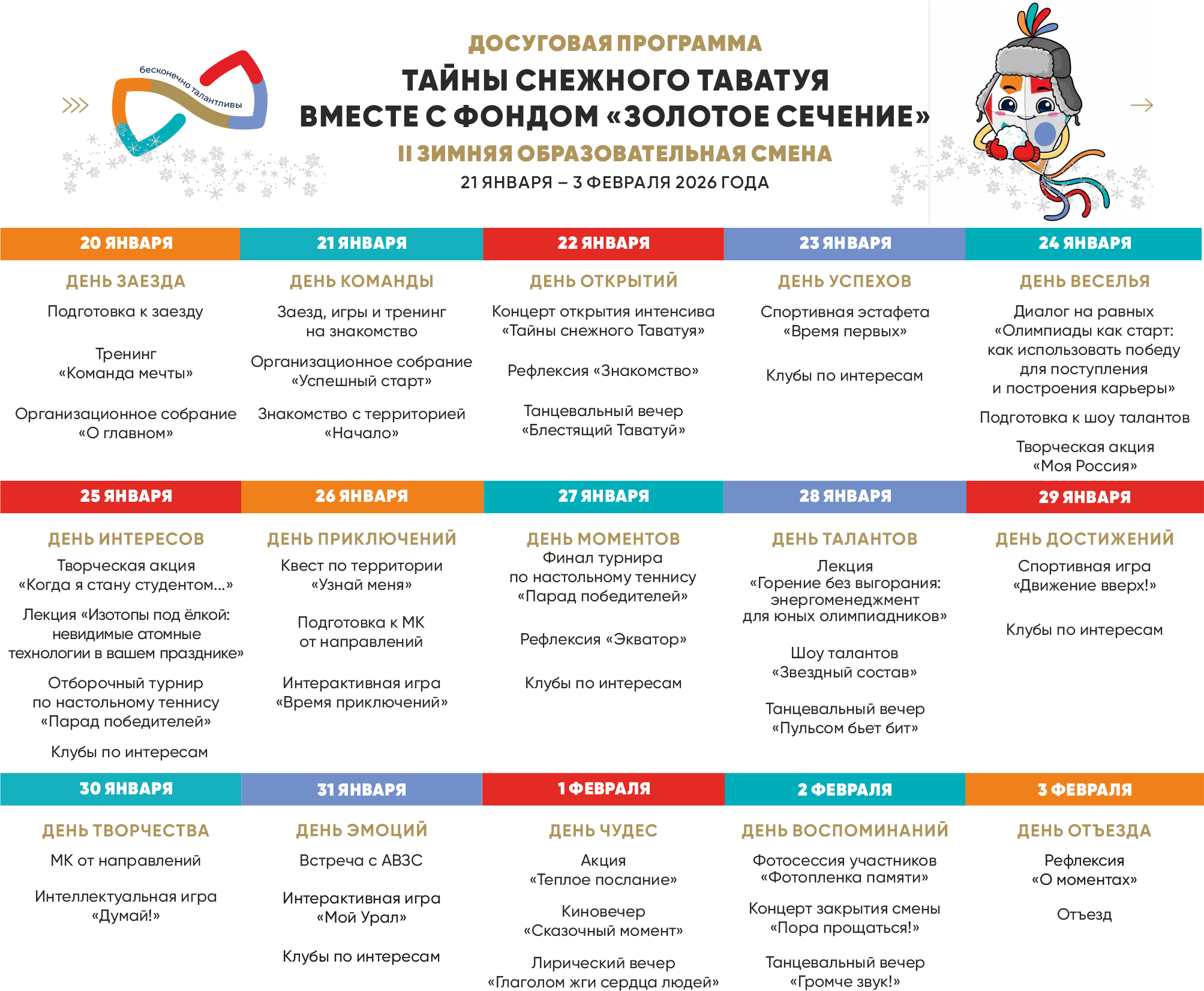 На базе Загородного образовательного центра «Таватуй» с 21 января стартует II зимняя образовательная смена Фонда «Золотое сечение».